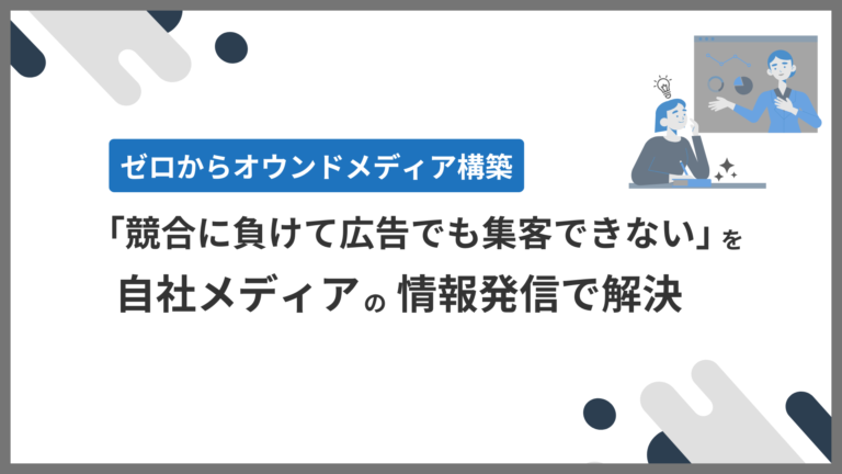 施策事例「広告を回してもROASが合わない」「競合に押されてオーガニックでの集客が徐々に減ってきている」「社内に成功事例はあるが、市場に発信する媒体がなく集客・販売に繋げられない」「競合に対して強みが伝わらず...